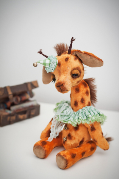 DETAILS: Needle-felted muzzle, tinted with oil paints, hands are wired, wear clown hat and collar